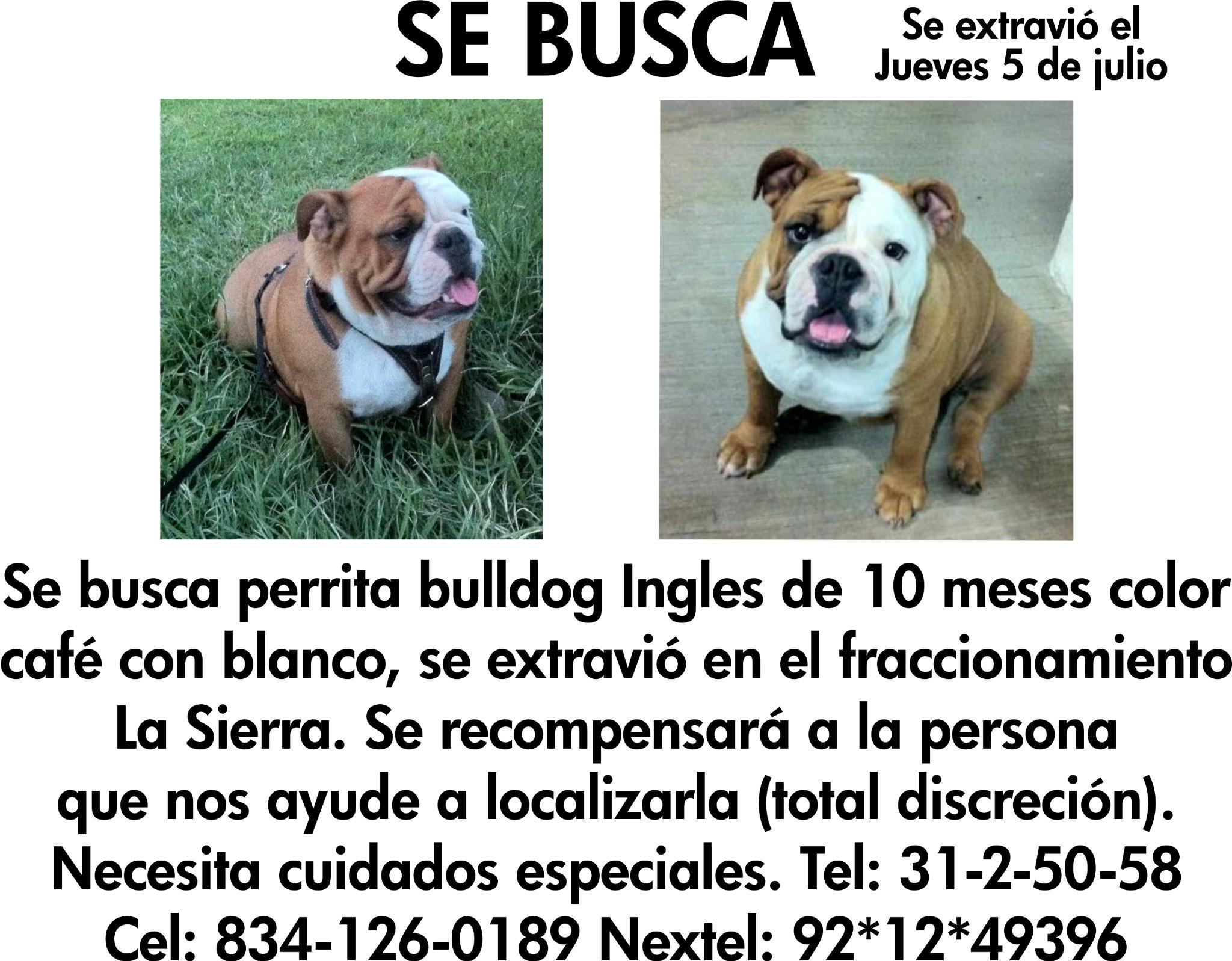 Perdido: Bulldog Inglés, hembra.